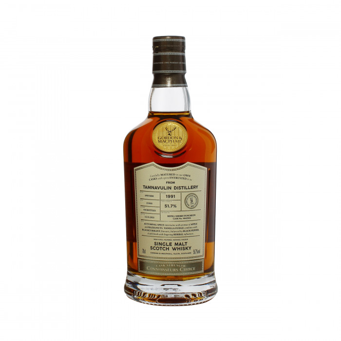 From revered independent bottlers, Gordon & MacPhail, this Tamnavulin single malt is a part of their Connoisseurs Choice series. Matured in a single refill sherry puncheon for over three decades, the Speyside expression was then bottled at a cask strength of 51.7% abv. One of only 418 bottles.