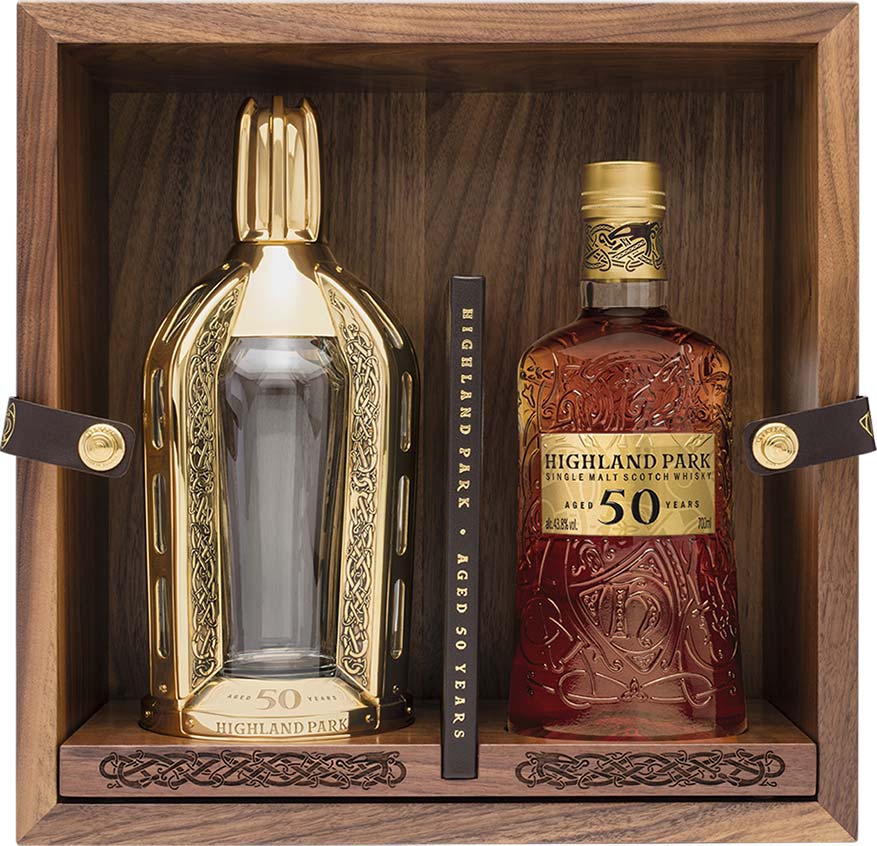 Bottled of natural color at 43.8% ABV, the 2020 release of Highland Park 50 Year Old is described as having aromas of “ripe black cherries, sweet Muscovado sugar, peaches and rich dark chocolate, conveyed on a whisper of new leather and soft peat smoke.” On the palate, “a complex and vibrant intensity of flavours follows with exotic spices, candied orange peel, toasted oak and ripe apricots delivering a deliciously rich yet fragrant sweetness.” It finishes with “dry spices and the impression of dark espresso coffee, enrobed in aromatic peat smoke.”