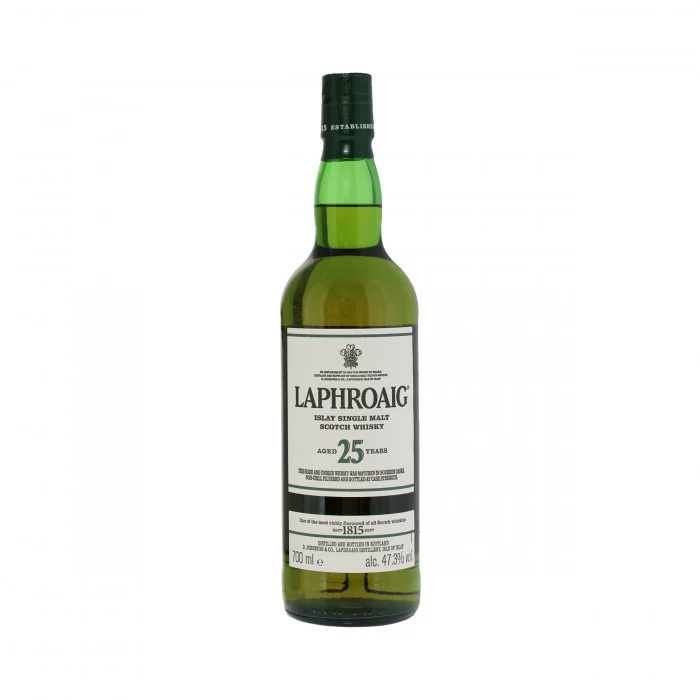 Introducing our 2023 Laphroaig 25 Year Old Cask Strength – a rare single malt whisky made from our own floor-malted barley and bottled at its natural cask strength of 47.3% ABV. Matured for 25 years in ex-bourbon casks, this expression delivers a beautifully balanced dram, unfiltered to preserve every nuance of flavour.