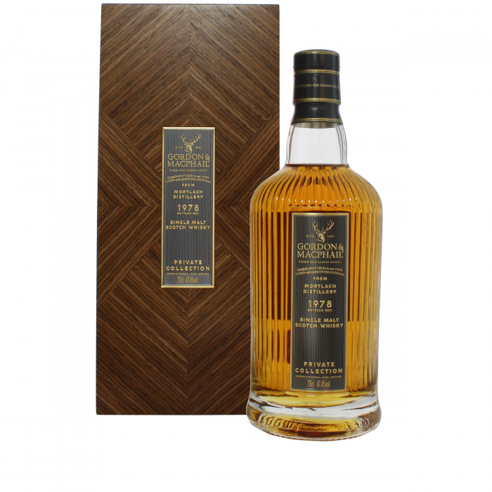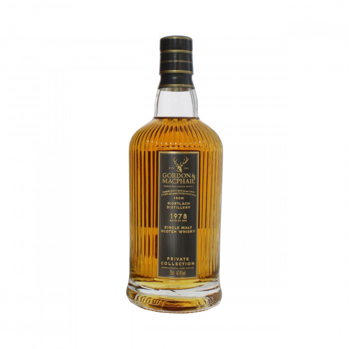 A top-notch single malt from Mortlach. This addition to the Private Collection range is a 1978 Mortlach single malt whisky. Aged in a single refill hogshead cask, this expression was bottled in December 2021 by Gordon & MacPhail. A yield of only 99 bottles, this whisky is about as rare as they come.